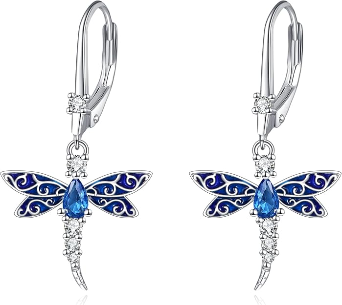 - 【Safe Materials】Dragonfly earrings are made of sterling silver and zircon .High polish finishing and tarnish resistant, it won't change color and get dark for life time wearing.